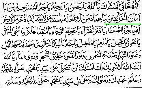 Di atas adalah bentuk doa "Ya Amaanal Khaaifiin" yang biasa diamalkan orang kita. Ianya ese ambil dari himpunan "`Aziizul Manaali wa Fathu Baabil Wishaal" yang berisikan antara lain, Ratib al-`Aththas, yang dihimpun oleh al-`Alim KH Fathullah Harun rahimahUllah. Beliau meletakkan doa ini selepas doa ratib yang masyhur tersebut. Biasanya orang-orang kat tempat kami menjadikan doa ini sebagai doa penutup setelah sembahyang fardhu dan sebagainya. Tiada sesiapa yang menyanggah amalan berdoa dan menyeru Allah dengan panggilan "Ya Amaanal Khaaifiin" tersebut di tempat kita ini, sehinggalah sekitar tahun 2003 di mana satu polemik mengenainya dicetuskan oleh seseorang yang mengaku bergurukan kepada Syaikh Muhammad bin `Abdul Qadir al-Mandili yang kononnya menyatakan bahawa doa tersebut tidak boleh diamalkan kerana ianya berasal daripada doa kaum Yahudi yang memohon keselamatan daripada Haman. Mujur juga polemik tersebut cepat dipadamkan oleh para ulama kita. Bahkan pihak Mufti Kerajaan Johor telah memutuskan mengenai doa tersebut pada 26 Rejab 1424H bersamaan 23 September 2003, yang antara lainnya menyebut:-- Kita tidak dilarang berdoa dengan karangan kita sendiri apatah lagi doa yang dikarang dan diamalkan oleh ulama`, selagi mana kalimah / perkataan doa tersebut tidak bercanggah dengan akidah, syariat dan akhlak Islam, juga dengan adab-adab berdoa.